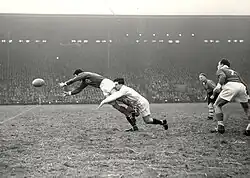 His association with the sport started at school, Dollar Academy, where he was also a Scottish Schools' internationalist, and continued with a number of teams including Edinburgh University, Leamington RFC,[15] Dollar Academicals,[16][17] The Army,[18][19][20][21][22] Perthshire Academicals,[23] and Panmure RFC.[24] Upon invitation, he played for Colonel Usher's XV,[25] the Co-Optimists,[26] the Public Schools' Wanderers,[27] and J. MacG. K. Kendall-Carpenter's XV.[28] Combined, county, and district level representation included, the Scottish Universities XV,[29] Hampshire,[30] Fife,[31][32] Perth and Angus,[33] and the Midlands District[34] who he captained against the North of Scotland on 10 October 1953.[35] Injury and the demands of his profession shortened his playing career.