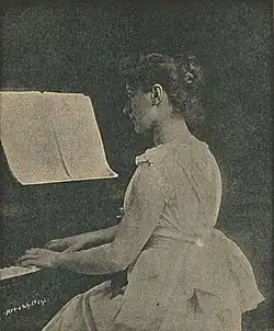 She came unheralded to America, formed a class of piano pupils in Chicago, and gave her first public concert in that city on 7 December 1888 in the Weber Music Hall. She played before the Artists' Club, in the Haymarket concerts and numerous others. On 27 June 1889, she played before the Indiana State Music Teachers' Association. On 5 July 1889, she played in the 13th meeting of the Music Teachers' National Association, in Philadelphia, and in August of the same year, she gave a series of piano recitals in the Elberon Casino in New Jersey. Her concert tour to Boston, Philadelphia, St. Louis and other cities took place in the early part of May 1890. Lewing was a composer as well, and in her youth, she wrote poetry.[3] Lewing continued performing on the radio throughout the 1920s[4][5][6] and into the early 1930s.[7]