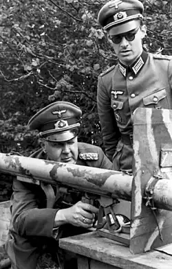 Kuntzen (kneeling) poses with a Panzerschreck in 1944