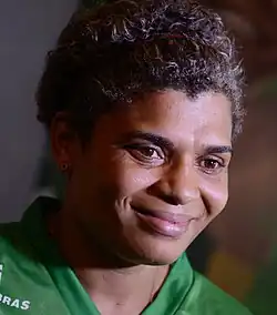 Adriana Dos Santos Araújo[a] (Brazilian Portuguese: [adɾiˈãnaɾɐˈuʒu]; born 4 November 1981)[2] is a Brazilian professional boxer. As an amateur she won a bronze medal in the lightweight division at the 2012 Olympics[3] and qualified for the 2016 Olympics at the same weight.[4]