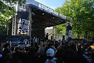 Attendees have also critiqued the values of Afropunk's organizers surrounding LGBTQ concerns, treatment of employees, and its corporate leanings. Some attendees critique the festival for appealing to white audiences,[13] including an instance of attendees being removed from an area of the festival for wearing a homemade t-shirt critical of the event.[14] In August 2018, Afropunk's Editor-In-Chief resigned after over a decade of work for Afropunk citing mistreatment and a corporate agenda he labeled "performative activism".[15][16]