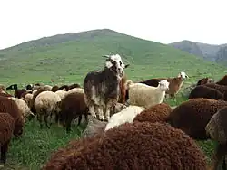 Agriculture is carried out mainly in the valleys and mountainsides of Armenia's uneven terrain, with the highest mountain pastures used for livestock grazing. Fertile volcanic soil allows the cultivation of wheat and barley and pasturage for sheep, goats, and horses.[2] With the help of irrigation, figs, pomegranates, apricots, and olives also are grown in the limited subtropical Aras River valley and in the valleys north of Yerevan, where the richest farmland is found.[2][5] Armenia also produces peaches, walnuts, and quince, and its brandy enjoys a worldwide reputation.[2]