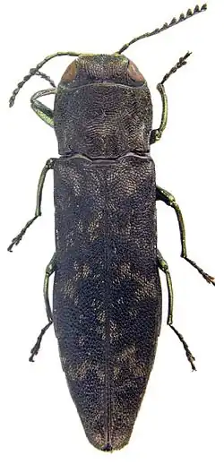 2. ^ Bellamy, C. L. "Genus Agrilus Curtis 1825". The World of Jewel Beetles (Insecta: Coleoptera: Buprestidae). The Coleopterists Society. Archived from the original on 15 February 2016. Retrieved 25 April 2018.