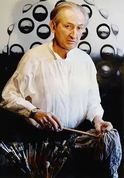 Fernández with one of his paintings.