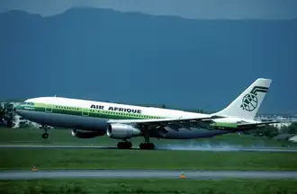 Air Afrique came into being in 1961 as a joint venture between Air France, Union Aéromaritime de Transport (UAT), and eleven former French-speaking colonies in Western and Central Africa, namely Cameroon, Central African Republic, Chad, Republic of the Congo, Dahomey, Gabon, Ivory Coast, Mauritania, Niger, Senegal, and Upper Volta.[1] Initially, the company inaugurated its services flying routes within those countries, and linking them as well.[1] On 5 January 1962, the carrier inaugurated its first intercontinental flights with Boeing 707s leased from Air France serving the Paris–Dakar–Abidjan and Paris–Douala–Brazzaville routes.[2]
