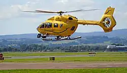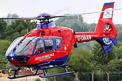 Emergency air ambulances are generally helicopter based, and used to respond to medical emergencies in support of local ambulance services. In England, Wales, and Northern Ireland, all of these services are charitably funded, and either directly owned by the charity, or operated under contract with a private provider.[3] The ambulance staff and doctors crewing these flights are generally seconded from the local NHS ambulance service and NHS hospitals. In Scotland, there is the only publicly-funded air ambulance service, with the Scottish Ambulance Service operating two Airbus Helicopters H145 helicopters and two fixed wing aircraft in this role, alongside two charity-funded Eurocopter EC135 helicopters, operated by Scotland's Charity Air Ambulance.
