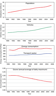 Trends in population, vehicular fleet, energy consumption and ozone concentration in the Mexico City Metropolitan Area (1990–2006)