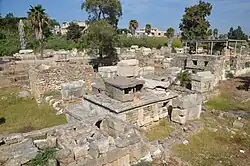 In the late 1980s, "clandestine excavations" took place in the Al-Bass cemetery which "flooded the antiquities market".[46] In 1990, a necropolis from the Iron Age was discovered in El Buss "by chance".[47]