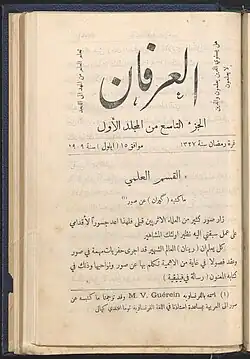 4. ^ a b c al-ʿIrfān, Volume 1, Issue 1, 1909, pp. 1-3.