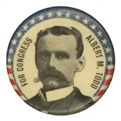Todd's days in Congress would prove to be limited, however, as in 1898 his bid for re-election would be narrowly defeated at the polls by an energized opposition in the predominantly Republican district.[8] Todd dedicated his efforts to an effort to create a liberal state opposition party to the Republicans, sitting on the State Central Committee of the Michigan Union Silver Party in 1899.[8]