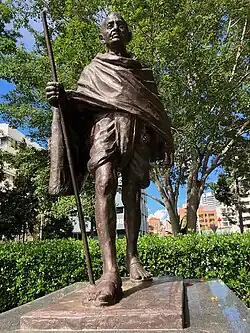 Brisbane's Indian community commissioned a statue of Gandhi, created by Ram V. Sutar and Anil Sutar.[9] It was unveiled by Narendra Modi, then Prime Minister of India in 2014, during the G20.[10]