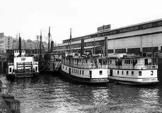 Albion and other steamers at Galbraith dock (now Pier 54), Seattle, circa 1904.