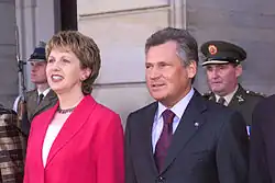 He identifies as an atheist.[49][50][51][52] In 2005, at the end of his second presidential term, the couple finalised their marriage in a low-key Catholic ceremony presided by Kwaśniewski's former presidential chaplain, in the presidential chapel.[53][54][55]