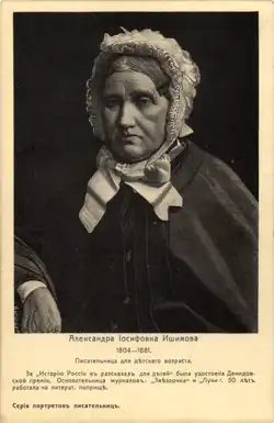Aleksandra Ishimova (Russian: Алекса́ндра Ио́сифовна (О́сиповна) Иши́мова) (6 January [O.S. 25 December 1804] 1805 – 16 June [O.S. 4 June] 1881) – was a Russian translator, and one of the first professional Russian children's authors.[1][2]