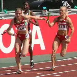 ![]() Neumiarzhitskaya (right) at the 2007 World Championships | ||