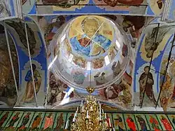 The frescoed cupola of one of the two katholikons.