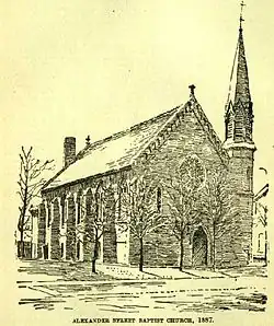Alexander Street Baptist Church was a Baptist church in Toronto, Ontario, Canada located on the south side of Alexander Street between Yonge and Church streets.[1] The congregation was founded in 1866 and the church building, designed by Henry Langley, was completed the following year. When the congregation relocated in 1888, it was sold to the Anglican Church and eventually demolished in the mid-1950s.