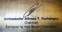 Yuchengco had been the Philippine Permanent Representative to the United Nations, with the rank of Ambassador Extraordinary and Plenipotentiary (A.E.P.).[4]