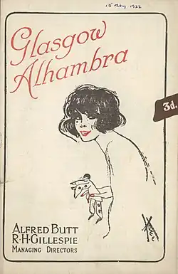 The Alhambra Theatre, Glasgow opened on 19 December 1910 at the corner of Waterloo Street and Wellington Street, Glasgow under the direction of Sir Alfred Butt and was acknowledged as one of the best equipped theatres in Britain, planned to accommodate 2,800 people.[1]