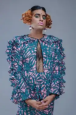 They challenge Western rationalism and an emphasis on reductive categories and instead insist on the complexity and enormity of everyone and everything.[28] They want to create work and ways of relating to each other that are less about being understood, and more about being felt. They believe that art is one of the places we can come closest to approximating truth. In an interview with the Chicago Tribune they write, "The problem with a category is that you reduce something as celestial as a human being into a word. Words only approximate truth, and art is where we go when we actually want truth.[29] In “Trans Self-Imaging Praxis, Decolonizing Photography, and the Work of Alok Vaid-Menon,” Ace Lehner explains that there is so much to the non-binary world of art then what meets the eyes. “As an identity and an analytic, trans offers a compelling challenge to photographic discourse” (page.1).[30] The artist Alok Vaid-Menon has featured many trans people in their artwork; Vaid-Menon explains that it can be hard to exemplify gender through a piece of art, however, they have done the most to overcome this obstacle and it can be seen through their work. However, Vaid-Menon does not only portray their work through photography, but they also write, design clothing, and create videos explaining and encouraging others. Vaid-Menon has also been featured in: "Beauty Always Recognizes Itself: A Roundtable on Sins Invalid" by Patricia Berne, Jamal T. Lewis et al. In this journal article, each artist reflects on what beauty, injustice, discrimination, and how it has impacted their artwork. Vaid-Menon mentions that, “As a gender non-conforming, transfeminine person, I am often told that I am ugly…” (page. 242).[31] They have since then chosen to challenge their artwork to display these issues, however, to step out and do this there needs to be support, even in the LGBTQ+ community.