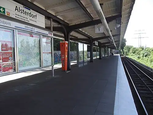 Alsterdorf is a metro station on the Hamburg U-Bahn line U1. The station was opened in December 1914[1] and is located in the Hamburg district of Alsterdorf, Germany. Alsterdorf is part of the borough of Hamburg-Nord.