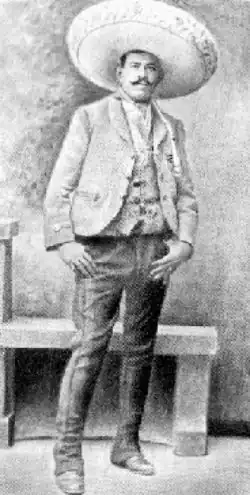 He was killed by a stray bullet on April 16, 1916[2] and was buried in a pyramid shaped mausoleum in Tlaltizapán, dressed as a charro.[9]