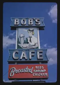 3. ^ "Bob's Cafe's iconic sign came down this morning, and now it's for sale". Argus Leader. August 22, 2019. Retrieved April 12, 2022.