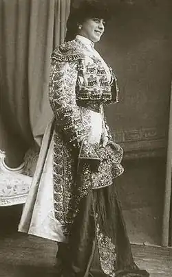 Amalia Molina (Seville, 1881 - Barcelona, July 8, 1956) was a popular Spanish tonadillera and dancer. Raised in Triana, she moved at a young age to Madrid, where she debuted at the age of 17. Her career took her to Latin America and even Broadway. In Paris she premiered in the opera, Goyescas. She starred in the film, Malvaloca (1926). She was married from 1904 to Trelles del Busto.[1]