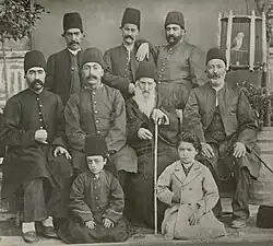 Amanollah Khan as a young boy (sitting left in front) with his family, the Donboli clan, ca 1870.