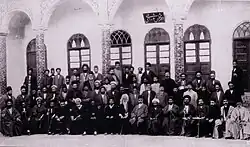 The Iranian deputies forming the first parliament (majles), 1906. Sitting second from right is Zia' os-Soltan.