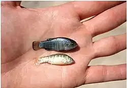 - ^ Lema, Sean (2008) Male and female Amargosa river pupfish (Cyprinodon nevadensis) [Photograph] https://www.americanscientist.org/article/the-phenotypic-plasticity-of-death-valleys-pupfish