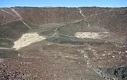 Amboy Crater is a dormant cinder cone volcano that rises above a 70-square-kilometer (27 sq mi) lava field in the eastern Mojave Desert of southern California, within Mojave Trails National Monument.[2][4]