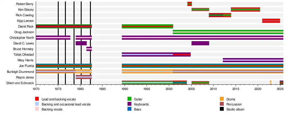 | Past members | David Pack Rick Cowling David C. Lewis Royce Jones Bruce Hornsby Cliff Woolley Tollak Ollestad Robert Berry Ken Stacey Kipp Lennon |