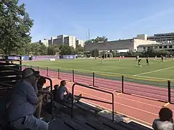 The American Eagles men's soccer team is an intercollegiate varsity sports team of American University. The team is a member of the Patriot League of the National Collegiate Athletic Association. In 1985, the team reached to the national championship, losing to UCLA after eight overtimes.[2]