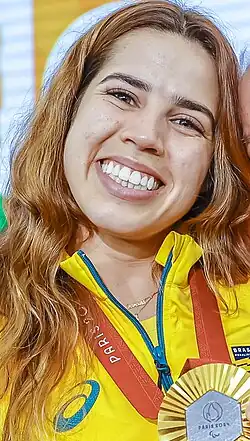 Having qualified for the 2024 Paralympic Games, she represented Brazil and won a gold medal in the 65 kg event,[1][2] the first in the history of women's taekwondo for the country, after defeating French athlete Djélika Diallo 13 to 7.[7]