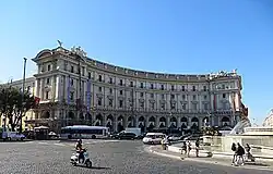 The building was originally built in 1887 as part of two twin neoclassical-style buildings constructed by Gaetano Koch. It was developed into a luxury hotel in the early 2000s. The new hotel was redesigned by architect Maurizio Papiri and designer Adam D. Tihany. The hotel embraces a wing that was built in 1705 by Pope Clement XI as a grain store. Some ruins of the Baths of Diocletian can be seen through glass in the basement.[1][2][3]