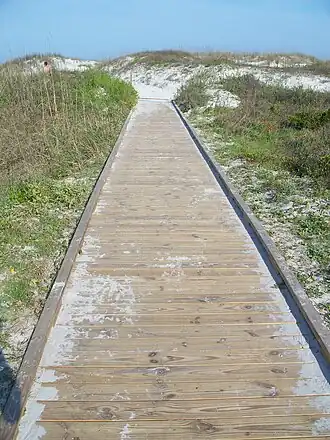 Anastasia State Park is a 1,600-acre (6.5 km2) state park in Florida, United States. Its location is on a peninsula on Anastasia Island across Matanzas Bay from downtown St. Augustine along the Atlantic coastal plain. This park has a variety of wildlife, birds and plants in a setting of beaches, tidal salt marsh, and marine and upland hammock.