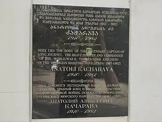 Anatoli Kacharava (Georgian: ანატოლი კაჭარავა; 15 August, 1910 – 8 May, 1982) was a Soviet and Georgian sea captain serving in the Soviet Navy. He is known for taking part in the arctic theater of the Second World War where he commanded a Soviet icebreaker A. Sibiryakov until its destruction by a German cruiser Admiral Scheer on August 24, 1942. Kacharava was severely wounded but survived, and was one of 22 of the ship's company that were captured by the Germans.