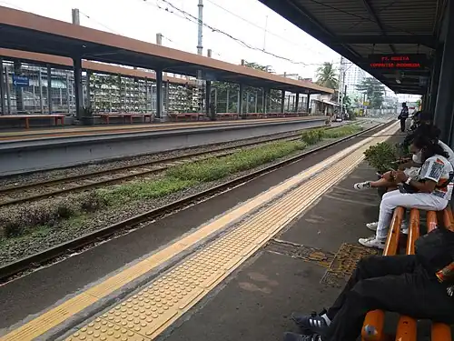 This station has four railroad tracks that have no turning tracks at all; consists of a double track with a double track on the north side leading from Jakarta Kota-Kampung Bandan and a double track on the south side leading from Rajawali.