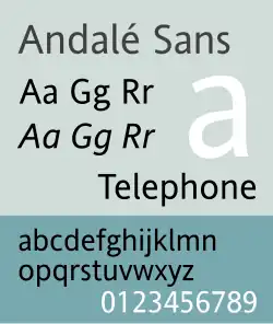 Andalé Sans (usually appearing as Andale Sans) is a proportional sans-serif typeface designed by Steve Matteson to complement its monospaced counterpart, Andalé Mono.[1]