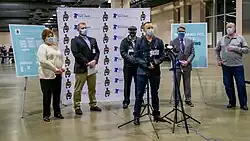 Doroshin at the PFC vaccine site opening with Philadelphia Mayor Jim Kenney, Councilman Bobby Hennon, Councilman Mark Squila, Dr. Karol Osipowicz, and deputy health commissioner Dr. Caroline Johnson (right to left).