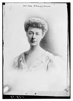 In the early 1880s, Mellon had a serious relationship with Fannie Larimer Jones, but he broke off the relationship after learning that she was suffering from tuberculosis. After this experience, Mellon refrained from courting women for several years.[116] In 1898, while traveling with Frick and Frick's wife to Europe, Mellon met Nora McMullen, a nineteen-year-old Englishwoman of Ulster Scots ancestry. Mellon visited McMullen's home of Hertford Castle in 1898 and 1899, and, after a period of courtship, the couple married in 1900.[117] Nora gave birth to a daughter, Ailsa, in 1901.[118] Nora disliked living in Pittsburgh, and she was unhappy in her marriage.[119] By the end of 1903, she had begun an affair with Alfred George Curphey, who would also later be involved with the wife of George Vivian, 4th Baron Vivian.[120] Mellon and Nora eventually reconciled, and in 1907 she gave birth to a son, Paul.[19] The reconciliation proved short-lived, as Nora took up with Curphey again in 1908 and requested a divorce the following year.[121] To avoid a public scandal, Andrew reluctantly agreed to a separation in 1909.[122] Seeking to hold divorce proceedings privately before a judge rather than publicly before a jury, in 1911 Mellon convinced the Pennsylvania legislature to amend a law that had required a jury trial in divorce proceedings.[123] In response, Nora attacked Mellon in the press, and the divorce proceedings were widely covered by the media. Nora went so far to contest the divorce that she made an appeal to King George of England and parliament. [124] In 1912, Mellon and Nora finally agreed on a divorce settlement, largely on Mellon's terms.[125]
