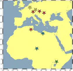 Disregarding the uncertain remains from Hungary and Asia, as well as those of Phalacrocorax intermedius, Anhinga pannonica is known from nine localities across Europe and Africa spanning a total of 10 million years. The oldest of these remains are from the Bavarian sediments dating to approximately 16-15 Ma, which also mark the northernmost extent of the species. During the early stages of the Late Miocene the darter was seemingly widespread around the Mediterranean, while the last known fossils of the bird stem from Messinian North Africa, approximately 7-6 Ma.[4]
