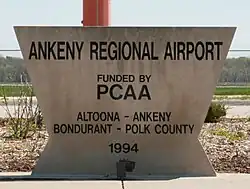 Ankeny Regional Airport (ICAO: KIKV, FAA LID: IKV) is a mile (2 km) southeast of Ankeny, in Polk County, Iowa. It is owned by the Polk County Aviation Authority.[1]