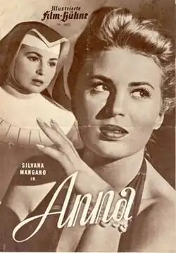 Anna is a 1951 Italian melodrama film directed by Alberto Lattuada and starring the same trio as Bitter Rice: Silvana Mangano as Anna, the sinner who becomes a nun, Raf Vallone as Andrea, the rich man who loves her, and Vittorio Gassman as Vittorio, the wicked waiter who sets Anna on a dangerous path.