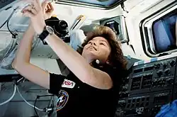 For STS-1, the inaugural orbital spaceflight of the Space Shuttle program and the maiden flight of the Space Shuttle Columbia, Abbey decided that the five MDs of the 1978 and 1980 astronaut selections—Fisher, Seddon and Norman Thagard from the 1978 group, and Bill Fisher and Jim Bagian from the 1980 group—would be assigned to the search and rescue helicopters supporting the flight. These would be required if the Space Shuttle crashed or the astronauts had to eject.[35] Fisher was based at the White Sands Test Facility, an alternative landing site. She performed this duty again at Edwards Air Force Base for STS-2, at White Sands again for STS-3 and at the Kennedy Space Center (KSC) for STS-4.[36] For these four missions, Fisher was involved in the verification of flight software at the Shuttle Avionics Integration Laboratory (SAIL). In that capacity, she reviewed test requirements and procedures for ascent, in-orbit, and Canadarm (RMS) software verification.[9] Fisher was a "Cape Crusader"—one of the astronauts who supported vehicle integrated testing and payload testing at KSC—for the STS-5 and STS-6 missions, and the lead Cape Crusader for the June 1983 STS-7 mission.[37]
