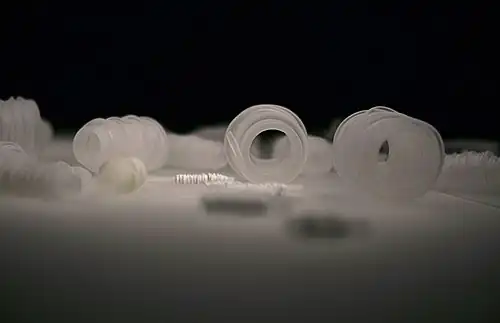 Anne Wilson (born 1949) is a Chicago-based visual artist. Wilson creates sculpture, drawings, Internet projects, photography, performance, and DVD stop motion animations employing table linens, bed sheets, human hair, lace, thread and wire. Her work extends the traditional processes of fiber art (techniques such as stitching, crocheting, and knitting) to other media.[1] Wilson is a professor in the Department of Fiber and Material Studies at The School of the Art Institute of Chicago.[2][3]