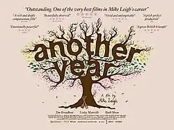 Wendy Ide of The Times described the film as "Leigh at his confident best" and "a disarmingly humane work", writing, "Mike Leigh shows admirable restraint: there are no manufactured crescendos, just a melancholy refrain that builds to its raw realisation in an achingly sad final shot."[16] Xan Brooks of The Guardian described Another Year as "a rare treat",[17] and Geoffrey Macnab of The Independent described the film as "an acutely well-observed study of needy and unhappy people desperately trying to make sense of their lives."[18]