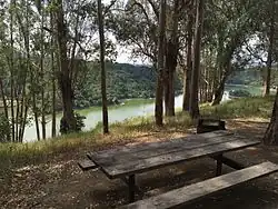 View of Lake Chabot from a campsite at Anthony Chabot Family Campground