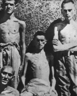 Late one night in November 1941 Chapman and Faramus were summoned by the Germans but they were not being recruited, they were being arrested. Their plan to join and work for the Nazis backfired spectacularly, since the pair were taken to mainland France and thence by rail to Fort de Romainville in Paris where they worked, stole rations and fuel and made a key to enter the women's section of the prison.[3]: 65 After a year Faramus, along with other prisoners from Romainville, was taken in terrible conditions by train via Compiègne to the Buchenwald concentration camp near Weimar, Germany. Of the 120 in his carriage 55 died en route from suffocation, dysentery and thirst.[5]: 99